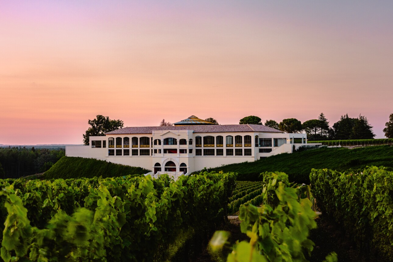 En 2019, pour concevoir l’outil technique du domaine, il s’adresse à Olivier Chadebost, architecte reconnu pour son approche à la fois sobre et rationnelle à qui l’on doit déjà la conception de château d’Yquem à Sauternes, château Montlabert à Saint-Émilion, Beaufort à Pomerol, Lafitte-Carcasset à Saint-Estèphe. Le résultat est un chai monumental de 9 000 m², construit à flanc de colline, et 12 000 m² d’unité de vinification « Quand je suis arrivé, il n’y avait presque rien », raconte Olivier. « Le terrain présentait un dénivelé d’une quinzaine de mètres, ce qui nous a permis d’imaginer un fonctionnement entièrement gravitaire, sans ascenseurs à vin ni pompage. »